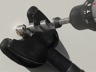 The base of the tool is manufactured from a soft flexible silicone type rubber, this allows the tool to stick efficiently to many surfaces, leaving your hands free to control the drill.