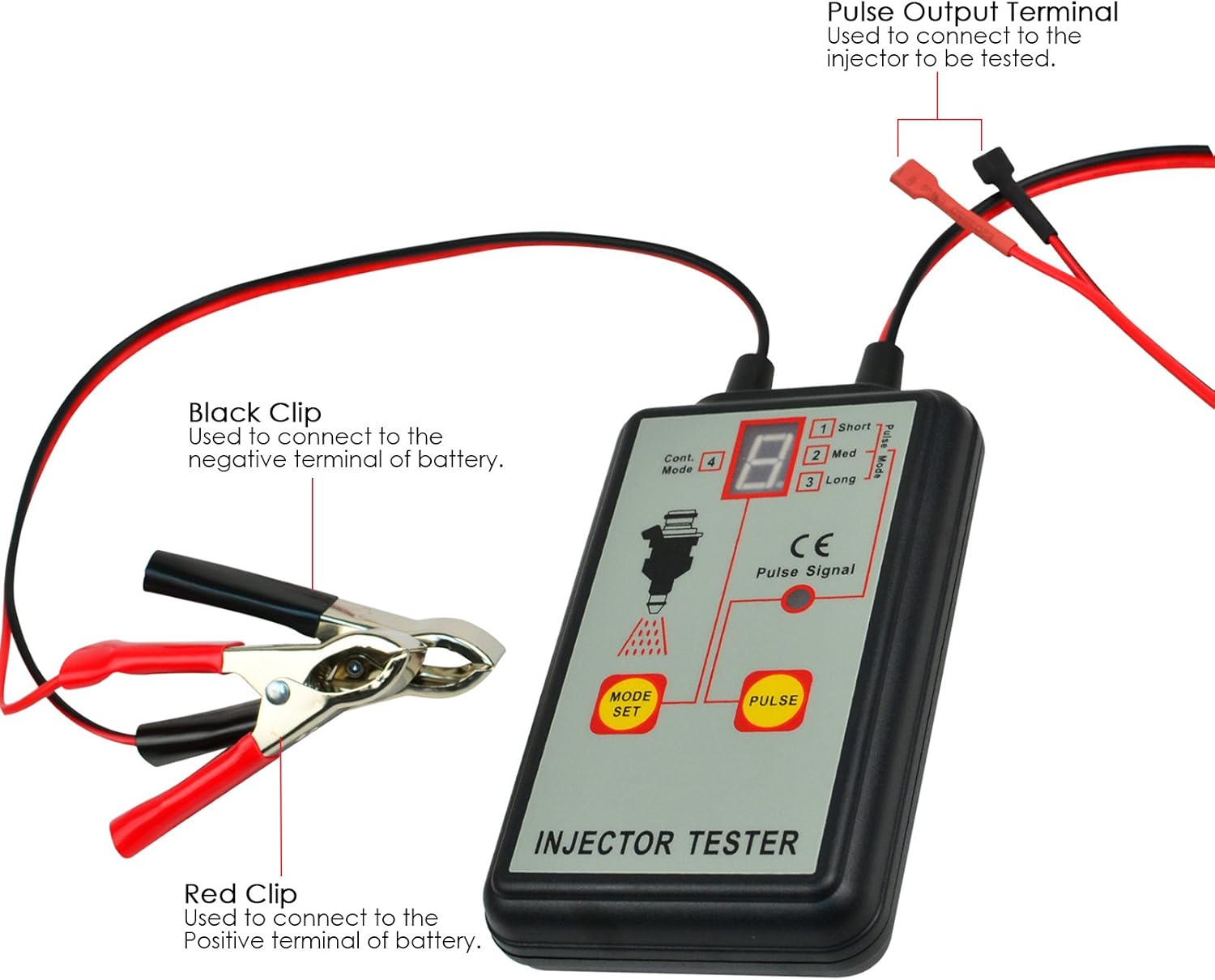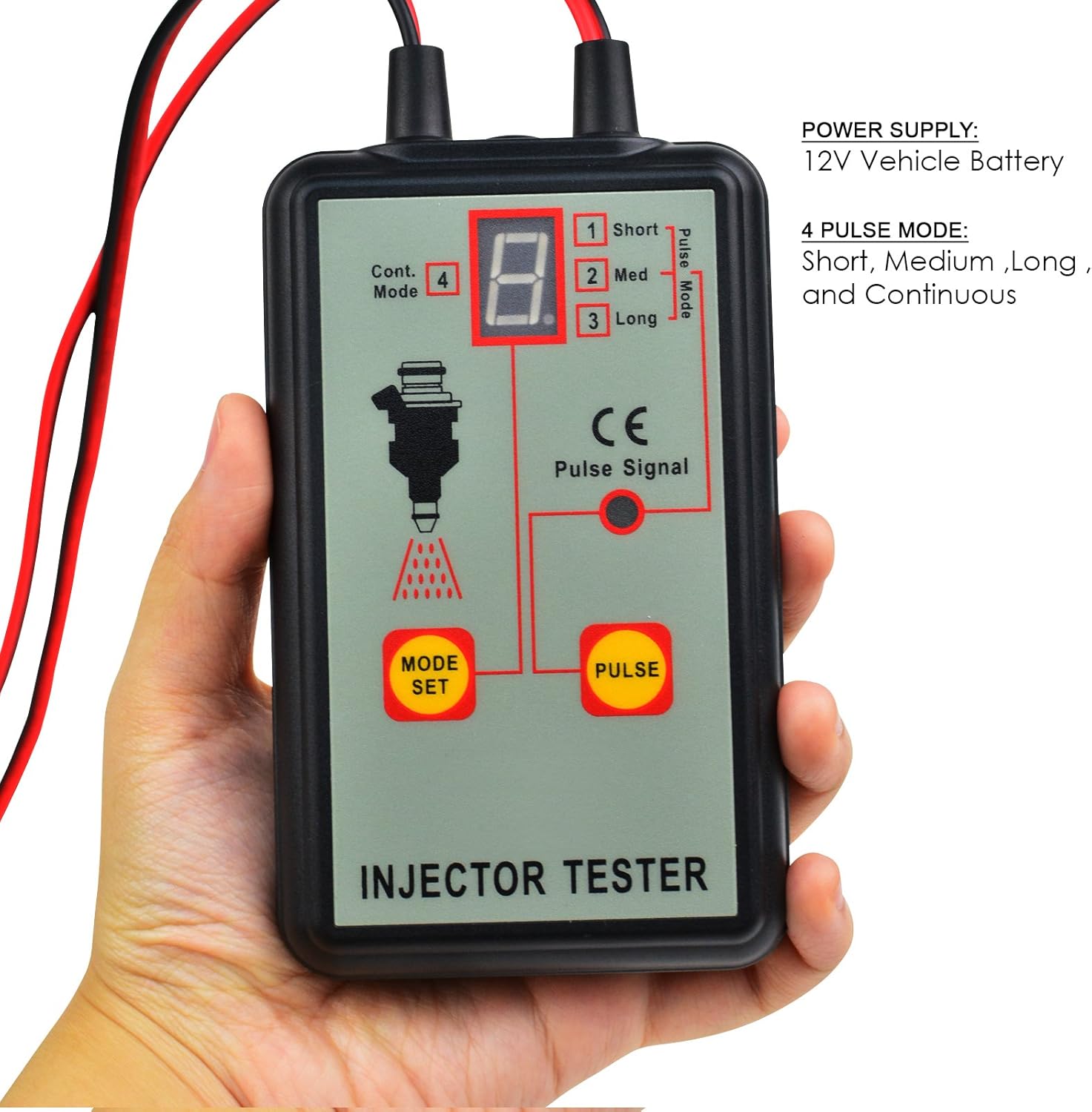 - 4 MODES - Large LED display with 4 pulse modes- Short/ Medium/ Long/ Continuous modes help to identify good or bad injector.